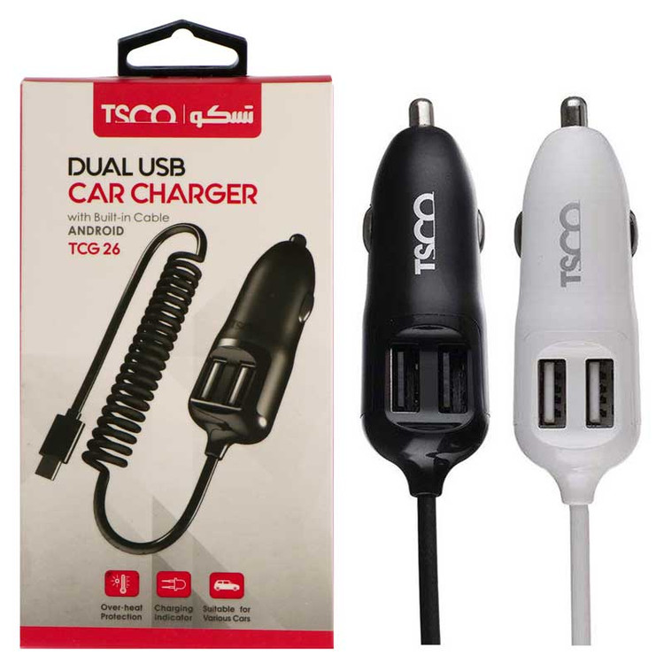 تسکو شارژر فندکی مدل TCG 26 را با طراحی زیبا و ابعاد کوچک با استفاده از پلاستیک ABS و فلز ساخته که ضمن اشغال فضای کم در اتومبیل، در برابر ضربه، فشار و دیگر آسیب ها از مقاومت مطلوبی برخوردار می باشد. بر روی این فندکی، دو پورت USB با قابلیت شارژ همزمان تعبیه شده تا کاربران بتوانند بر اساس حداکثر شدت جریان عبوری ۲٫۴ آمپر و ولتاژ خروجی ۵ ولت، گوشی های موبایل و دیگر دستگاه های سازگار خود را در سرعتی مناسب شارژ نمایند. جهت شارژ دستگاه سوم یا انجام عملیات شارژ توسط سرنشینان عقب خودرو، به قسمت پایینی بدنه ی TSCO TCG-26، یک کابل فنری به طول ۱۰۰ سانتی متر و رابطی از نوع Micro USB متصل شده است. ولتاژ ورودی این محصول، که در برابر افزایش حرارت از دستگاه متصل شده محافظت می نماید، برابر با ۱۲ تا ۲۴ ولت و مناسب استفاده در انواع خودرو ها خواهد بود.