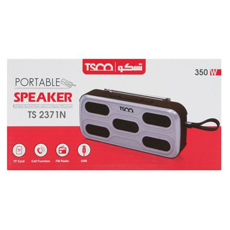 اسپیکرهای بلوتوثی قابل حمل امروزه مورد توجه کاربران بسیاری قرار گرفته اند، شرکت های زیادی این محصولات ارزشمند را به تولید رسانده اند که شرکت تسکو TSCO را میتوان از یکی از خوش نام ترین آنها نام برد. TS 2371N یکی از مدل های ساخته شده توسط این شرکت می باشد که از کیفیت بالایی برخوردار است. این اسپیکر امکان پخش موسیقی را به وسیله اتصال با سیم از طریق رابط جک ۳٫۵ میلی متری صدا داشته و اتصال بی سیم آن از طریق بلوتوث ورژن ۴٫۲ با برد اتصال ۱۰ متر، به سایر دستگاه ها مانند گوشی موبایل، تبلت، لپ تاپ و … می باشد. علاوه بر این از کارت حافظه رم و فلش مموری USB نیز برای فراهم کردن شرایط پخش موسیقی پشتیبانی می کند.