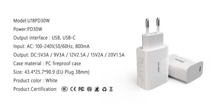 پورت خروجی که روی شارژر کلومن پلاس مدل U18PD30W در نظر گرفته شده است که در واقع برتری این شارژر نسبت به سایر شارژ ها را نشان می دهد، پورت Type-C می باشد. این پورت دارای فناوری PD بوده و می تواند با توان 30 وات دستگاه کاربر را شارژ کند و این پورت در واقع برای دستگاه هایی است که دارای فناوری PD برای شارژ هستند یا برای شارژ سریع نیازمند توان بالایی هستند. با استفاده از فناوری شارژ فوق سریع Power Delivery،کاربر قادر خواهد بود دستگاههای بزرگتری مانند تبلت،لپتاپ، و لوازم خانگی هوشمند را با ایمنی زیاد و سرعت بسیار بالا شارژ کند.